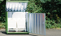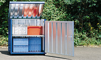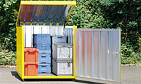 Diese Lagerboxen sind erhältlich mit einem Sperrholzboden oder ohne Boden als bodenfreie Lagerbox für das praxisgerechte Beladen mit Hubwagen. Die Lagerboxen werden eingesetzt als geschlossenes Kompaktlager, als Box für Gartenmöbel, als Wert- und Reststofftonnendepot, als geschlossenes Depot für Kurierdienste, für nachts anliefernde Spediteure und vieles mehr.